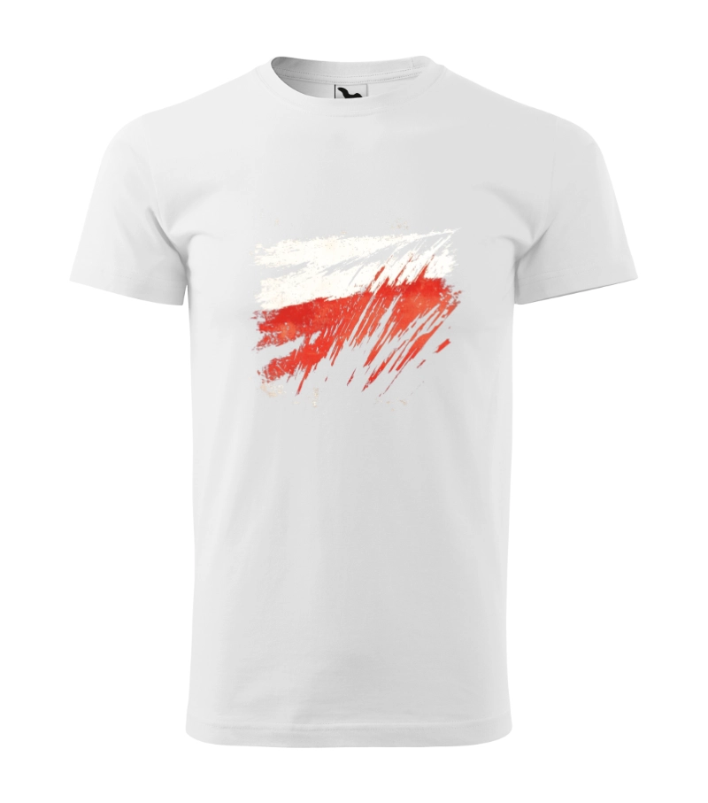 Minimalistyczny, ale potężny przekaz patriotyzmu! Koszulka z artystycznym wzorem polskiej flagi to doskonały wybór dla każdego mężczyzny, który z dumą reprezentuje swoją ojczyznę. Dynamiczne przetarcia bieli i czerwieni symbolizują historię, walkę i niezłomność polskiego ducha.